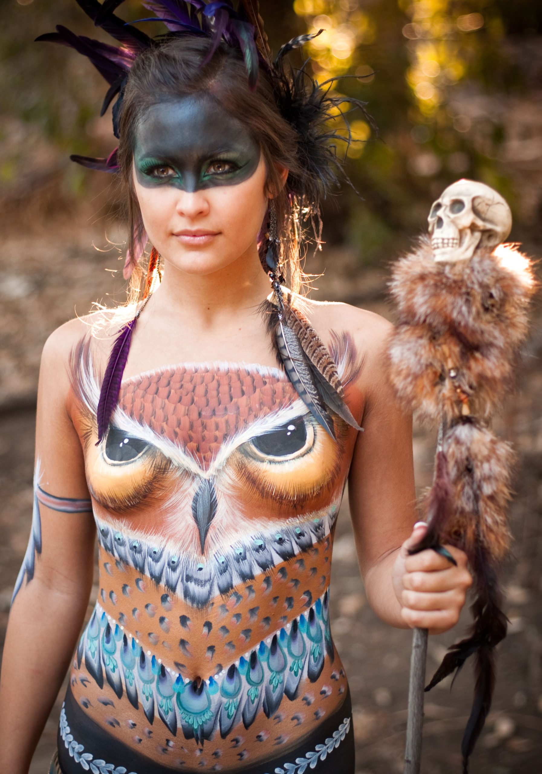 When it comes to body art, there seem to be no boundaries. This appears to be true for the woman in question. Why stick to one race when you can represent multiple? Her deep hair color and captivating eyes give us clues about her intended camouflage in this image.